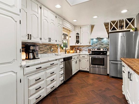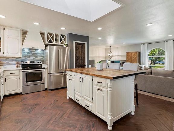 Spectacular remodeled home in El Camino. Perfect for your growing family. 4 beds, 3 baths & large 2 car heated & cooled garage, sited on a acre lot. Front yard is stunning w/ mature shade trees, perennials, custom mail box, newer windows, & large driveway w/ additional storage/parking. As you enter you'll notice all of the custom upgrades. Gorgeous tile work, stunning ship-lap & farm style built in gate. Open floor plan w/ new herringbone tile, bright & inviting w/ expansive windows, even a skylight. The kitchen is the SHOW STOPPER ready to please. Including stunning gourmet hood, stainless appliances, KitchenAid fridge, mosaic tile, center prep island, butcher block counters, floating shelves, & large formal dining. Spacious master w/ French doors leading to the deck, dual closets, & updated ensuite bath. 2nd large bedroom has detailed wainscoting, large windows, & updated full bath. Lower level is where the party thrives. Built-in wet bar, stunning tile, kegerator, mini fridge & fireplace. 2 more large beds, updated bath & laundry complete the lower level. The back yard entertainment oasis, has New 700 sqft personalized double tiered deck, built in hot tub, lighted pergola, & planter boxes. Yard is massive & private, w/ mature neighboring trees, lush green grass, storage shed, all encased by a 6 ft wood privacy fence. Plus, no neighbors in the rear of the property. Close to shopping, schools, Pueblo Blvd which connects to I-25/Hwy 50. Take a look!
