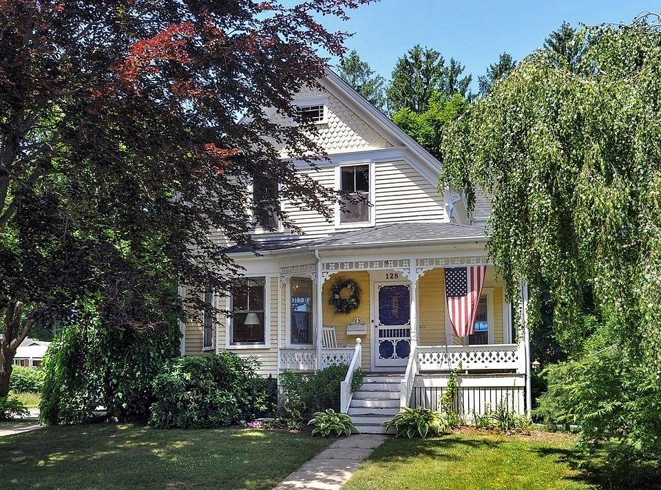 If your home search includes phrases such as charm, character, built ins, stained glass, exquisite old world details, then look no further. This well cared for Victorian is listed for the first time in over 50 years. Sunlight pouring through large windows, dramatic ceiling heights and fantastic woodwork at every turn. Enter the kitchen through the back deck. You will find french doors & built ins leading you to the dining room, formal living room & study. Rest a while on the front porch while admiring the ornate gingerbread woodwork. On the second floor you will find a large primary bedroom with two closets, 2 additional bedrooms & full bath with claw foot tub. Roof '19, Heat & HW '12, Garage Clapboard & roof '19, Refrig & Dishwasher '21. Pulldown stairs in garage lead to ample walk up space, could be used as storage, artist studio or gaming loft - wired for elec. Surrounded by mature trees and thoughtfully curated perennial plantings, you must visit this home to appreciate its beauty. 2022-08-05