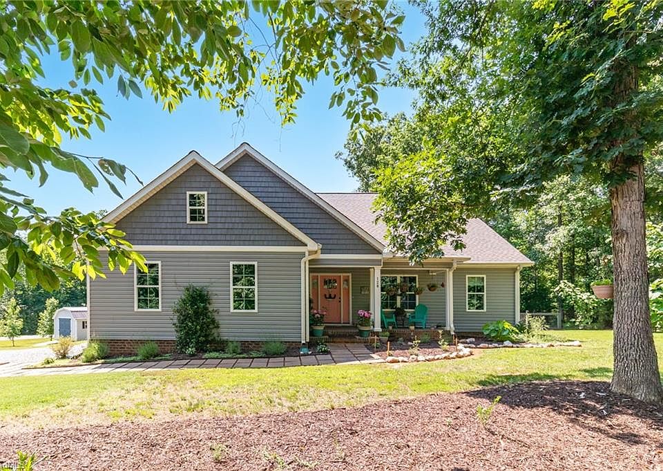 Welcome home to this 2020 built, 3 bedroom, 2 full bathroom home! Situated on a full acre of land, this one level spacious home features an open floor plan on a corner lot. The great room offers vaulted ceilings that flows seamlessly into the kitchen with island and stainless steel appliances. The split floor plan provides privacy. The deck overlooks the fenced backyard, complete with a fire pit- ideal for entertaining. Don't miss this opportunity to own this move-in ready home with close proximity to High Rock Lake! Kitchen and garage refrigerators, and washer/dryer convey! No HOA, convenient to Southmont Boat Launch and quiet wooded lot.