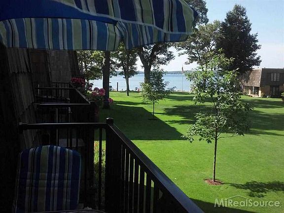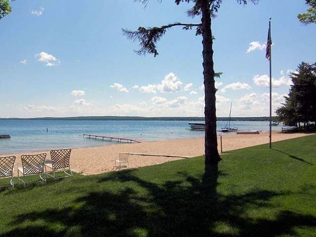 Don't buy a pontoon, buy a condo that includes a share in a newer 4 stroke pontoon. Fully furnished, one-bedroom condo on beautiful Higgins Lake. It sleeps 4 and has a full bathroom off master bedroom and 1/2 bath off kitchen/dining area. Kitchen Aid washer and dryer are in the unit. Admire Higgins Lake from your balcony or swim and sun on the well-maintained 250 feet of sandy beach. HOA fees are reasonable and include shared use of pontoon boat, swim platform, recently renovated clubhouse, septic, water, and two docks. A one-car garage is included. It has a wood-burning fireplace for those chilly winter nights. There is boat mooring available for use while you are in residence. Just bring your clothes, golf clubs, and swim noodle. Move in ready.