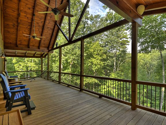 Prime Location in the ASKA adventure area sits this gorgeous glass chalet. This cabin offers year-round mountain views and is close to Stanley Creek and the Toccoa River. Surrounded by hundreds of acres of USFS making your outdoor activities unlimited. This lot is over 2 usable acres and includes a fire-pit area to enjoy the views. A separate matching, permanent shed for storage and a Cummings whole house generator. There is also a HUGE party porch with an outdoor fireplace. The main level offers a Master Suite with laundry and guest bath. Great room with the wall of glass taking in the stunning views. The upstairs offers another suite and a sleeping loft/office multi-use. The terrace offers another entertainment area with a full wet bar, additional bedroom and fireplace. This cabin is pristine and built by one of the most reputable builders in the area, Brandon Mathis. This place can be used for rental, weekend getaway or for full time living.