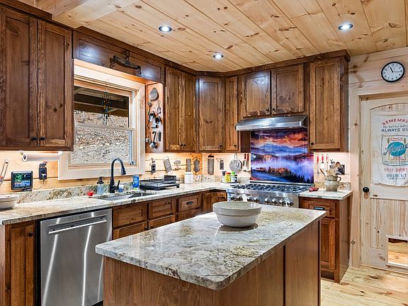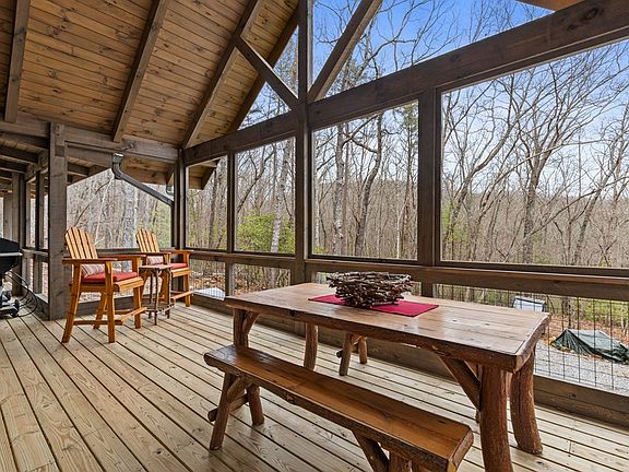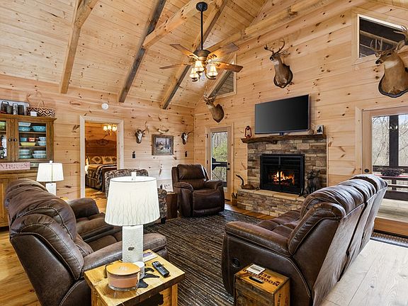 Stunning True Log Cabin on 4.81 Acres in Morganton, GA. Looking for a true log cabin in the North Georgia mountains? Look no further! This beautifully crafted four-bedroom, three-bath cabin, built in 2024, offers 2,762 heated/cooled square feet of living space on a wooded 4.81 acres lot just minutes from Blue Ridge. Step inside to a spacious vaulted living area with an open-concept design, featuring a stunning stone fireplace with gas logs for cozy mountain nights. The main floor includes three bedrooms, two full baths, a master suite on the main level, a kitchen, dining area, and laundry room. The kitchen is a chef's dream, boasting stainless steel appliances, a six-burner dual-fuel stove, refrigerator, dishwasher, and a large single-bowl sink. The walk-out basement offers a private guest suite with its own bedroom, full bath, and living area with a separate entrance. Additionally, the basement features a heated/cooled workshop, flex space, and a double garage to keep your vehicles out of the weather. Short term rental friendly neighborhood! High-end finishes include custom pine cabinetry, beautiful granite countertops, 8-inch wide pine plank flooring on the main level, and LVP flooring in the basement suite. Outside, the wrap-around porch invites you to relax and take in the peaceful mountain surroundings. This cabin is built for comfort and efficiency with dual-fuel HVAC and a Generac whole-house generator for peace of mind. Partially furnished (see listing disclosure for details), this mountain retreat is move-in ready.Located just a short scenic drive to downtown Blue Ridge for shopping and dining, and minutes from Lake Blue Ridge and the Toccoa River, this is your perfect North Georgia getaway!