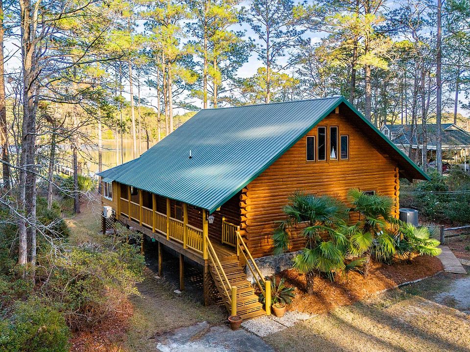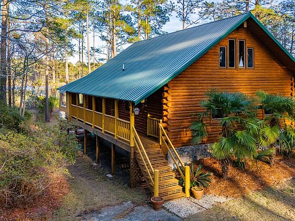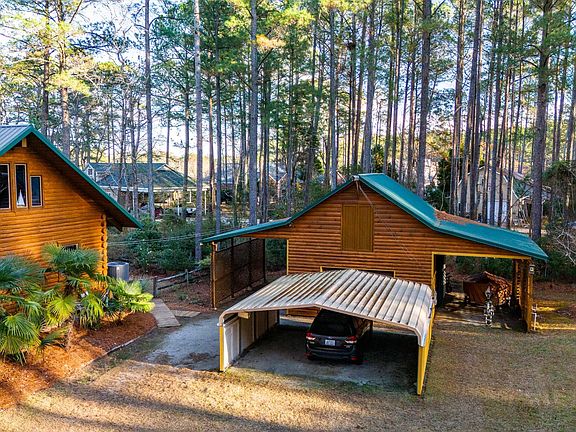 Nestled along the peaceful banks of Browns Creek, this charming two-bedroom log cabin offers a perfect blend of rustic appeal and waterfront beauty, making it an idyllic retreat or the ultimate vacation getaway. As you drive down the iris-lined driveway, you'll be captivated by the meticulously landscaped grounds, showcasing an array of vibrant blooms—irises, roses, lilies, azaleas, camellias, amaryllis, clematis, hardy hibiscus, and majestic tree lilies—creating a garden that flourishes with beauty throughout the seasons.