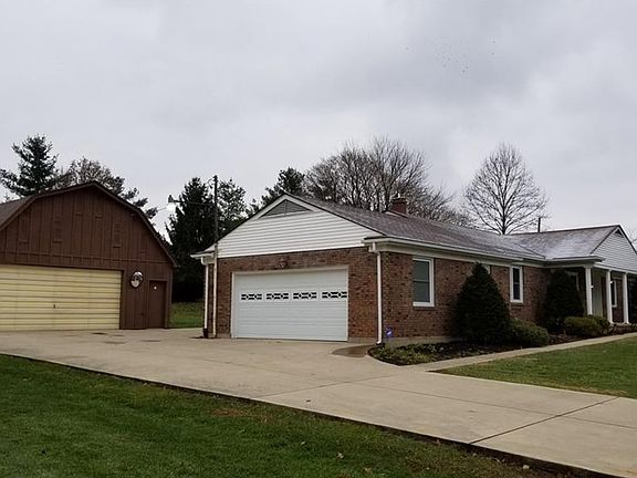 Brick ranch with attached garage and detached Dutch style 42x26 barn with electric/concrete floor/loft........concrete driveway...home has new flooring/paint throughout