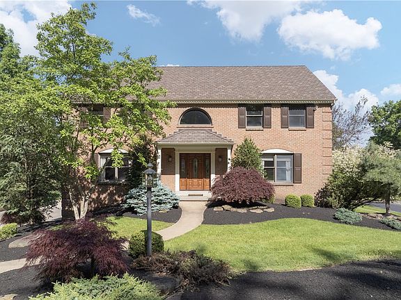 Lovely all Brick 4 Bedrm, 2 full & 2 half bath, 2 Story nestled on a professionally landscaped 1/2 acre lot in Peters Twp! Extra parking extension, trex deck, partially fenced rear yard plus 3 car garage! 2 Story Open Entry w/Ceramic Tile flr & upper balcony on second level. Brazilian Cherry Hardwood Flooring throughout the spacious Living Rm w/Crown Moldings, elegant Dining Rm w/Chair Rail & Crown Moldings, Family Rm w/Masonry Gas burning Fireplace opens to the Kitchen w/beautiful cabinetry, Granite Countertops, Large Granite island w/wine frige, Stainless Steel Appliances, 12x12 Breakfast Rm w/Cherry Hardwd flooring, vaulted Ceiling leading to the trex deck. First flr Laundry Rm w/plenty of cabinetry & exterior door leading to deck. The Upper Level all newer carpeting, Master Suite w/Vaulted Ceiling, Beautiful Master Bath & 3 additional spacious bedrms. The Lower level has a finished Gameroom, Powder Rm, walks out to covered patio, 3 car garage + additional 12x12 storage room.
