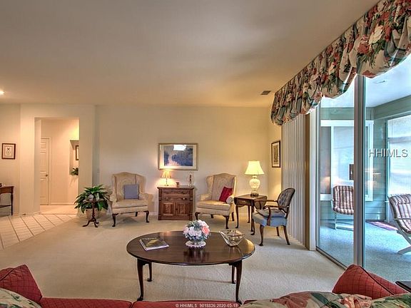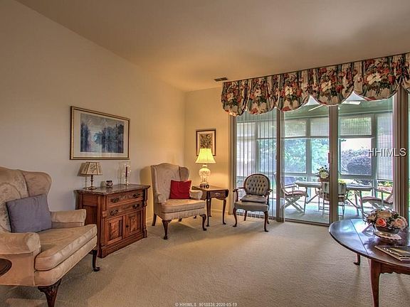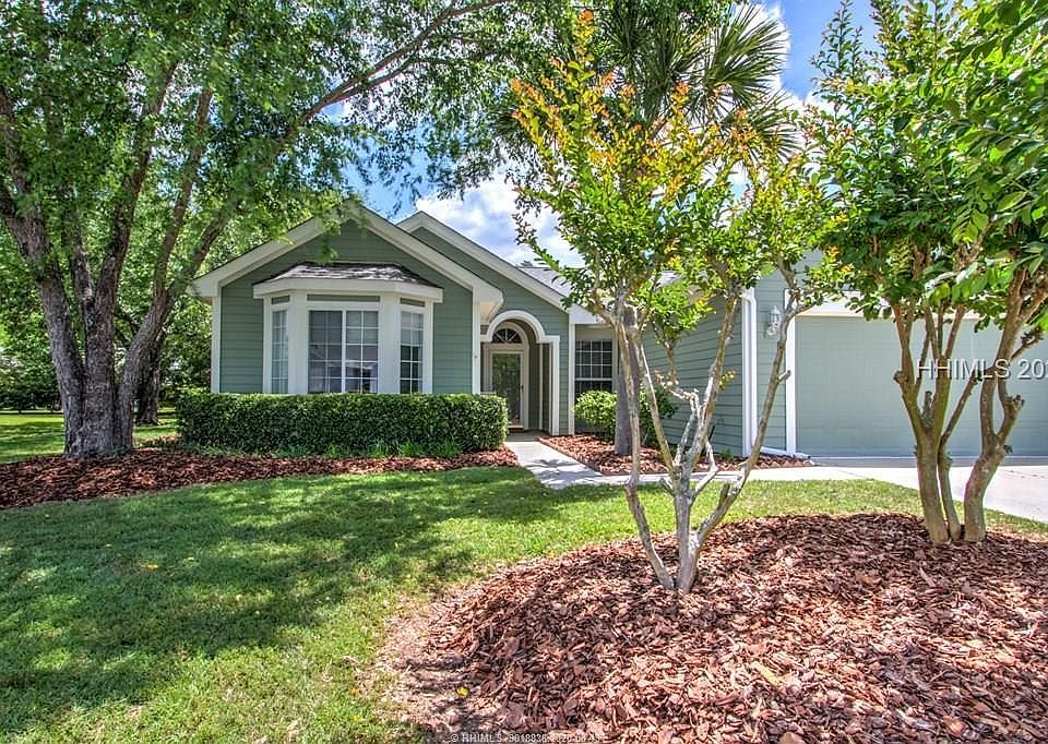 This Del Webb home, w/Hardiplank siding, is located on a large lot on a cul-de-sac. Great Room w/8' sliders leading to enclosed porch; dining area w/bay window; light, bright kitchen w/clerestory windows, Corian countertops, new stainless appliances, pantry; washer/dryer room; master bedroom w/bay window, large walk-in closet & bath w/walk-in shower; guest bedroom w/bay window & adjoining bath; den w/solid doors could be used as additional guest sleeping area. Enclosed porch w/plexi glass & screens adjoining patio. Spacious, deep yard. Two car garage w/long extended driveway. 2013 roof & AC. "Best location in Sun City Hilton Head" per owner!