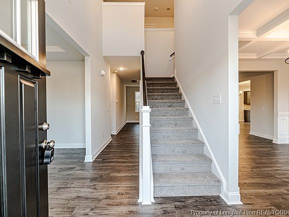 Stunning new community in Sanford close to US 1, Fort Liberty and Sanford activities. This beautiful two-story home with over 2900 sq ft will meet all your family needs. A southern style front porch welcomes you into the home with both formal living and dining space. A grand great room with electric fireplace. Fabulous office/flex with full bath. The kitchen is enormous and includes a corner pantry, granite counters, lots of cabinet space, island, and lots of space for a large family table. Upstairs boast an oversized owner's suite with soak tub, separate shower, dual sinks, private toilet area and large walk in closet. 2 big guest bedrooms, flex area or office, another full bath and don't forget the finished bonus space. Outside enjoy gathering on the covered back deck and the over half acre lot.