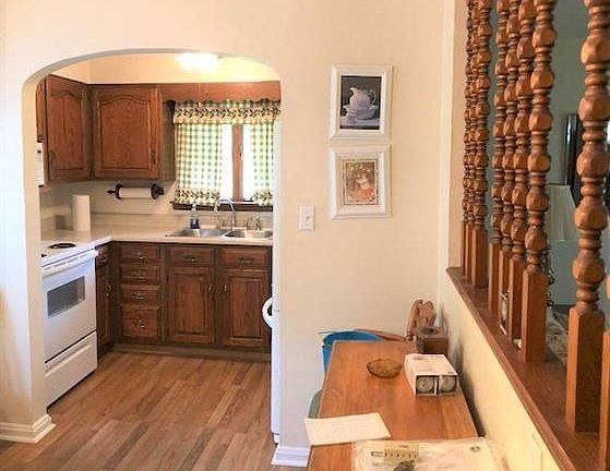 With 2 bedrooms on the main level and bonus 2 rooms above this 4 bedroom home includes a spacious basement with a family room, laundry room den and bonus room. Walk out into the 1 1/2 stall integral garage. Newly remodeled bath, maple and oak hardwood floors under wall to wall carpet, pergo kitchen flooring, solid wood kitchen cabinets with new counter tops and sink, newer appliances, plaster walls, anderson windows, updated furnace, 200 amp electrical box, siding, large patio for entertaining, Roof is in good condition. Home has been well maintained and situated on 4 beautiful lots. Shed was stick built and has electric. Property in rear abuts a paper alley and acres of wooded property. Lots of room on the roofed extra large patio for summer entertaining.