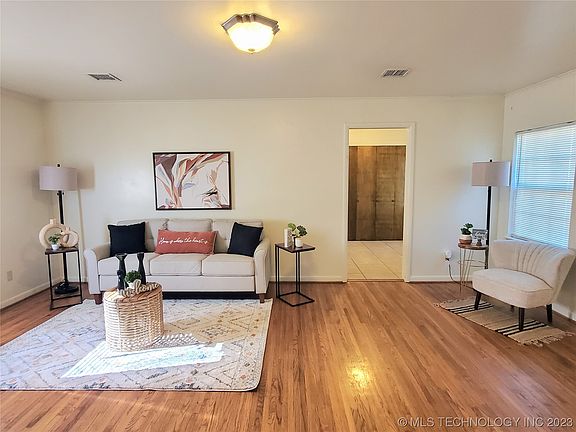 Fantastic starter home that offers 3 bed and 2 bath that backs up to a greenbelt. Walking distance to schools a quick drive to town. Nestled in a quiet and established neighborhood. Original wood floors in main living and 2 bedrooms. Extra large living room and split floor plan. Separate dining room just steps from the large kitchen. Inside laundry with shelves. Master has walking closet and private bath. Large back yard with a storage building with shelves and electric. Newer Bryant Heat pump furnace. Newer white paned windows. All this within 2 miles from the boat ramp of Keystone Lake.