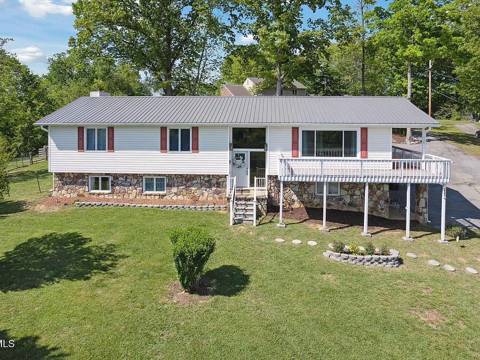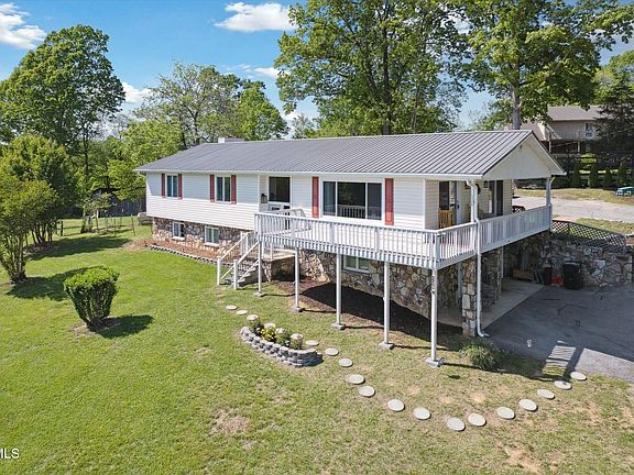 This beautifully remodeled, move-in ready home offers 3000 sq ft filled with natural light. Located in highly desirable GRAY, TN, it features 5 bedrooms, 3 full baths, MOUNTAIN VIEWS, and a spacious layout. Sitting on 1.5 acres of cleared, usable land, you'll find a fenced pasture, barn, peach trees, privacy trees, and a partially finished chicken coop—ideal for goats, chickens, gardening, and more. There's also potential to add a PRIVATE second driveway for circular access. Inside, the large living room welcomes you with a BRAND-NEW oversized picture window framing stunning mountain views. The oversized kitchen features granite countertops, a new stovetop, island, breakfast nook, and ample pantry space. The main level includes three bedrooms and an fully updated hall bath with mood lighting and a Bluetooth speaker. The primary suite offers a walk-in closet, deck access, and a private fully updated bathroom and tiled walk-in shower. Upgrades include: fully renovated kitchen and upstairs baths, NEW luxury vinyl plank flooring, brand-new metal roof, tankless water heater, radon mitigation system, smart thermostat, and more (ask for the full list). The finished basement offers a large family room with recessed lighting and a movie projector that conveys. A built-in kitchenette with stainless steel hood vent is ready for a stove and sink. Two additional bedrooms and a full bath make it perfect for a guest or in-law suite. Enjoy mountain views from the wraparound porch or relax on the back deck with porch swing and entertainment area—including a 55'' outdoor TV that stays! A custom 12'x22' shed is negotiable with acceptable offer. Located in the county—NO city taxes—and minutes from I-26, Johnson City, and Kingsport. Schedule your showing today! Buyer/buyer's agent to verify all information.