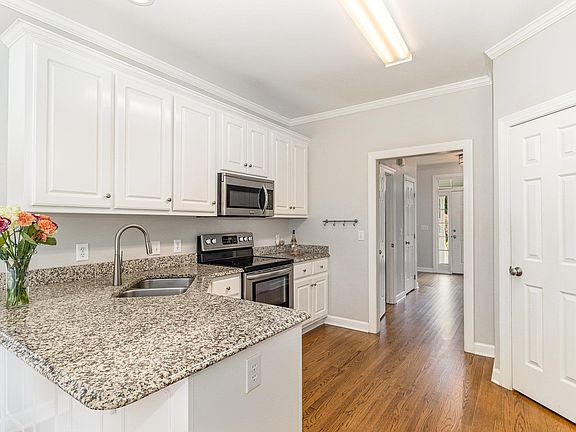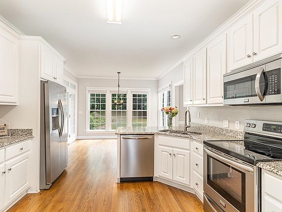 If living in a highly regarded neighborhood sounds appealing then put this beautiful 3-bedroom, 2.5-bathroom charmer in Glen Laurel at the top of your list. Refinished hardwoods flow throughout the foyer, kitchen, and dining room. The natural light, neutral decor, and stylish fixtures are sure to please! The kitchen boasts granite counters, stainless steel appliances, generous cabinet space, and an attractive layout to create an inspiring environment for culinary achievement. The serene primary bedroom features a vaulted ceiling, an expansive walk-in closet, and a private bath with a separate tub and shower. Spacious secondary bedrooms! Great bonus room! Unfinished walk-up attic space offers many possibilities! New carpet throughout. Two-car side entry garage. Exterior includes a breezy front porch and a screened back porch. Convenient to Clayton Village Shopping Center as well as to popular parks and trails including Clayton River Walk and East Clayton Community Park! Optional pool and golf memberships are available. Seller offering a 2/1 buydown credit with Towne Mortgage - Paige Campion. Inquire for details!