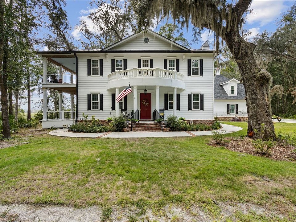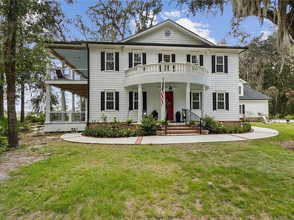 Welcome to this exceptional 2022-built home in the desirable gated community of Misty Harbor in Woodbine, GA. A true masterpiece, this residence is a replica (with a little expansion of the square footage) of the iconic Josiah Smith House in Charleston, SC, offering the perfect blend of historic charm and modern elegance. With extravagant finishing touches throughout, this home boasts unique features that set it apart. Upon entering, you're greeted by a grand 19-foot ceiling in the entranceway, creating a dramatic first impression. The dining room is a showstopper, complete with built-in seating and oversized windows that flood the space with natural light and provide picturesque views of the surrounding landscape. A true highlight of the home is the beautifully appointed library with a stunning tin ceiling-perfect for quiet reading or showcasing your favorite collection. The loft area offers added versatility, featuring Murphy doors that lead to an attic for additional storage space. The spacious primary suite opens onto a private balcony, where you can relax and take in the serene marsh views-ideal for morning coffee or evening sunsets. Two wood-burning fireplaces, never before used, add a touch of historic warmth and charm to the living spaces. The home features high-end LVP flooring throughout, complemented by regal carpeted stairs for added comfort. Whether you're entertaining guests or enjoying peaceful solitude, this home provides a versatile and accommodating space for everyone.