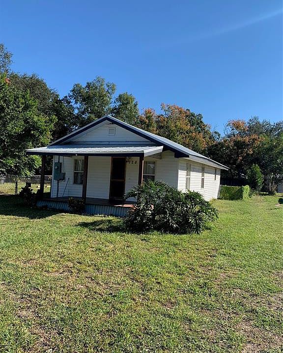 Cute bungalow with over 836 sq feet heated, Great room open to kitchen, 2 small bedrooms, Front and back porch, Super buy, Great location! Private and quite with empty city field across street, 2 churches a couple doors down. No HOA, Room for a boat or RV, detached garage/barn for storage with 441 sq feet. Front porch and back porch. Fresh paint, full bath with washer dryer hook up. Small storage room, fenced yard, close to Lake Ariana for boating and fishing, shopping and restaurants within a mile. Single family home offers newer metal roof in 2019, newer central air and heat 2021, septic & drain field 2011, newer stove and refrigerator 2020, termite bond 2024. Sold in As is condition.