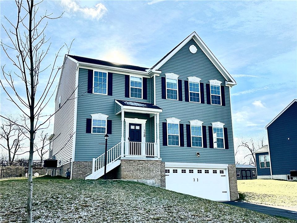 This beautiful 4 bedroom, 2 full bath, 2 half bath home was built in 2021. Character & charm are seen in the many upgrades throughout. When entering you'll be greeted with 9' ceilings, LVP flooring, & an abundance of natural light. The open concept living room features coffered ceilings & a gas fireplace framed by built ins and windows. The kitchen includes an 8' island, white soft close cabinets, quartz countertops, subway tile backsplash, & SS appliances. The added sunroom is the perfect spot to enjoy that morning coffee. The den has double french doors, an ideal spot for an office. Crown molding and window trim upgrades throughout. A loft area provides extra living space. The owners suite includes an ensuite with ceramic tiled shower, double vanities, & a walk in closet. 2 more BRs, the laundry and a guest bath complete the upper level. The lower level includes a 4th bedroom and powder room. The fenced in back yard & fire pit with electric is perfect for entertaining. A must see!