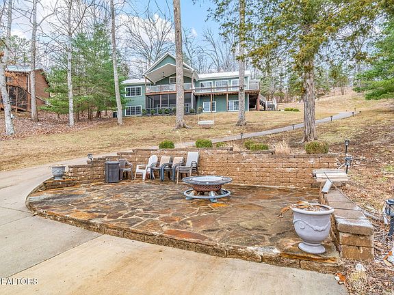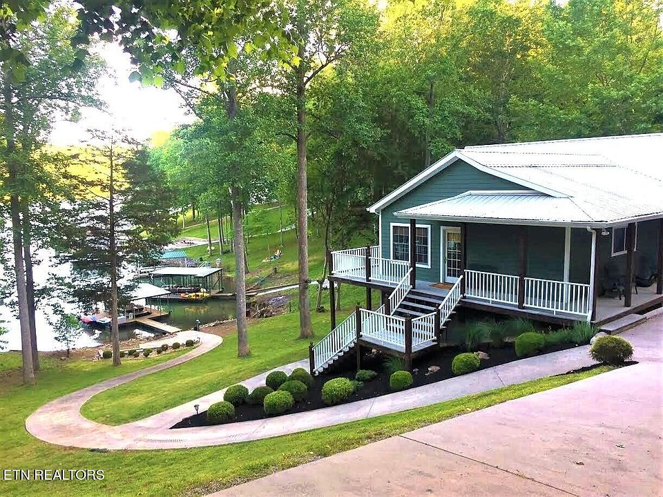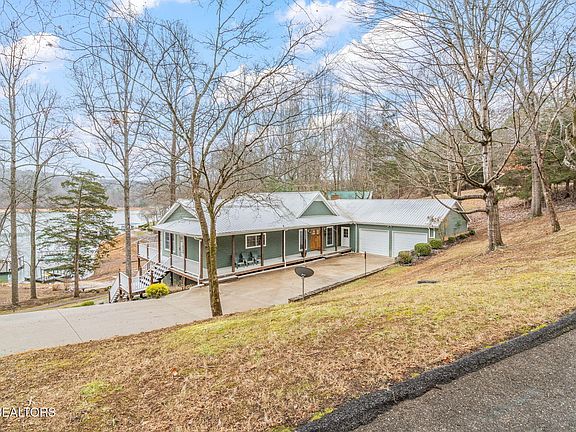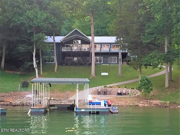 Beautiful lakefront basement/ranch home with plenty of space inside and outside, a hard to find, gently sloping lot with a concrete path to a one-slip covered dock with swim platform, a great location on a sheltered cove and cul-de-sac street in Deerfield Resort, along with a captivating view of the lake and Chuck Swan Wildlife Area. This 3,870 square foot features 4 bedrooms (all with lake views) 3 full and 2 half baths, including en suite masters on each level.The 1935 sq. ft. main-level living area is open concept with a wall of windows facing the lake, and features a spacious kitchen, dining area and great room with gas fireplace. In addition, the main level also has a laundry room, pantry, half-bath, and French doors to a covered patio with ceiling fans and lights. The large kitchen has an island More... with gas downdraft cooktop, bake/convection wall oven and built-in microwave, large refrigerator with icemaker, dishwasher and stainless-steel sink. The dining area easily accommodates 12 adults and looks out to a lake view. There is additional seating for 4 at the kitchen island breakfast bar. The lower level has another great room with gas fireplace, wet bar with stainless sink and under-counter refrigerator, and a half-bath. French doors open to a screened patio with ceiling fans and lights. Down the hallway are two additional bedrooms. A full bathroom with dual vanity and tub/shower combo is directly across from these two lower level bedrooms.In addition, this home has a 1,000 sq. ft. 2.5 car garage. There is ample room in the gently sloped driveway to park a boat trailer plus at least 5-6 cars and unlike many Norris Lake driveways, you can step out of your car onto level ground. The exterior features a wraparound porch and deck to enjoy wooded views on one side and spectacular lake views on the other. You'll spend a lot of time on the covered elevated back deck with an amazing view of the lake and wildlife area.