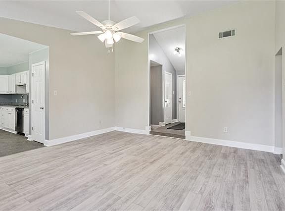 This beautifully updated home offers both style and comfort that make it move-in ready for today's homeowner. Split Floor Plan for Privacy & Functionality. The den features a beautiful wood-burning brick fireplace as its focal point, enhanced by a soaring cathedral ceiling that adds warmth, space, and charm to the main living area. Spacious Kitchen Designed for the Family Gather in a large dining area that overlooks the back patio. Private Primary Suite with Barn Door Updated, Comfortable Flooring Throughout, All wet areas feature durable tile, the living room and primary bedroom boast brand new grey laminate flooring, and the secondary bedrooms are carpeted for added comfort. Beautiful, Low-Maintenance Landscaping Landscaping has been recently refreshed, and flower beds feature a timed drip irrigation system to keep everything lush with minimal upkeep. Freshly Painted & Upgraded, New flooring in the living area for a clean, updated look, Ceilings freshly painted throughout the home, Entire back patio painted, ready for your next party. Roof and AC were just inspected with receipts to show that both are in working condition. Roof is 4 years old.