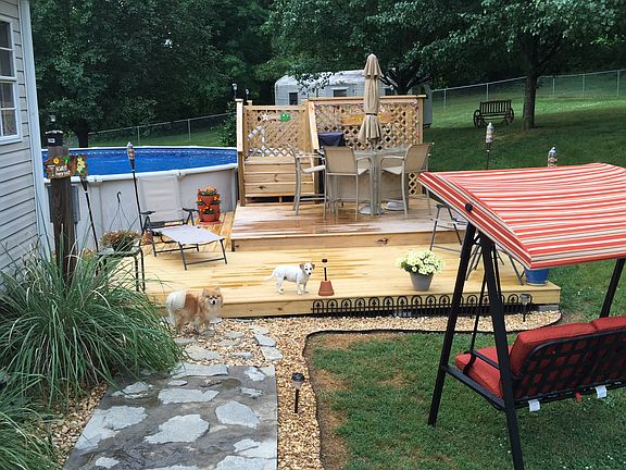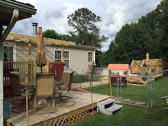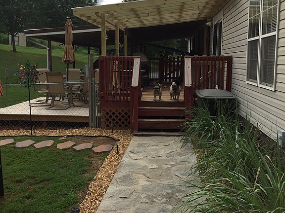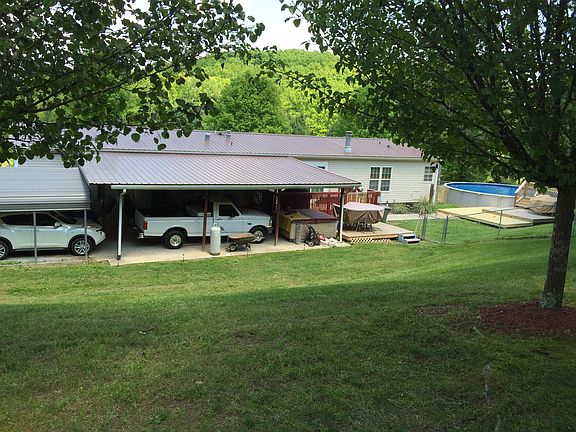 Attached carports 4 vehicles, has covered hot tub 3 decks , above ground pool, fenced in back yard outside building.