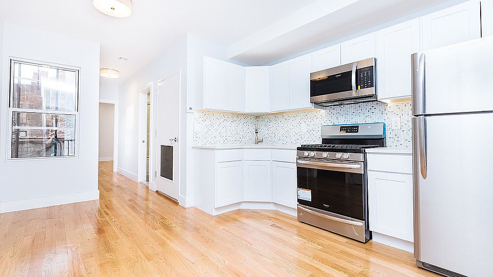 Fantastic new renovation on one of the best blocks in Greenpoint, just steps from the G train! Tons of natural light, custom cabinetry, high-end appliances, excellent storage space throughout the apartment, and kitchen and bathroom finishes that will make you swoon! KILLER LOCATION. Call today to set up a showing Central A/C High Ceilings Hardwood Floors Video Intercom Natural Light in Living Area Washer dryer installed Stainless Steel Appliances Stone countertops Roof access Skyline view