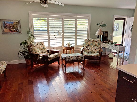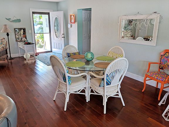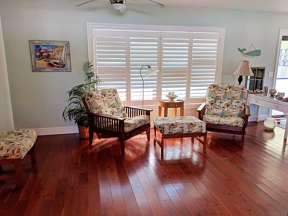 Prepared to be wowed by this charming coastal cottage home. It offers the best of both worlds...charming "old Florida" home with all of the modern features that you want like- double pane windows for energy efficiency and quiet, beautiful easy care wood floors, completely updated kitchen with solid surface counters, stainless steel appliances, and 2 fully updated bathrooms. All this in a wonderfully open floor plan that suits every buyer. There are beautiful wood, plantation shutters on every window of the home, giving it that warm, but clean look. The back yard is a real oasis. Completely fenced with vinyl fencing and bordered with tropical landscaping, there is plenty of room to store a boat and for a pool, an expanded deck, fire-pit, or whatever you are dreaming of. The inside laundry room features a front loading washer and dryer included with the sale. There is a large storage area for all of your lawn equipment or outdoor toys. Completely move in ready for your winter retreat or full time home. This one is going to go fast!