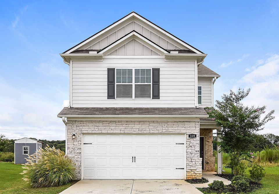 Please note, our homes are available on a first-come, first-serve basis and are not reserved until the lease is signed by all applicants and security deposits are collected. This home features Progress Smart Home - Progress Residential's smart home app, which allows you to control the home securely from any of your devices. Want to tour on your own? Click the "Self Tour" button on this home's RentProgress. Check out this new construction rental home in Cartersville with three bedrooms and two-and-one-half bathrooms. The open floor plan begins in the living room, where laminate flooring adds a stylish touch. A recessed light and a window illuminate your dining room table. Swiftly prepare meals on the kitchen's granite countertops, then cook them on the stainless steel appliances. Upstairs, the primary bedroom's plush carpeting and oversized window create a restful atmosphere. Organize your clothing, shoes, and accessories with ease thanks to the bedroom's walk-in closet. The en suite bathroom includes a combination bathtub and shower unit.