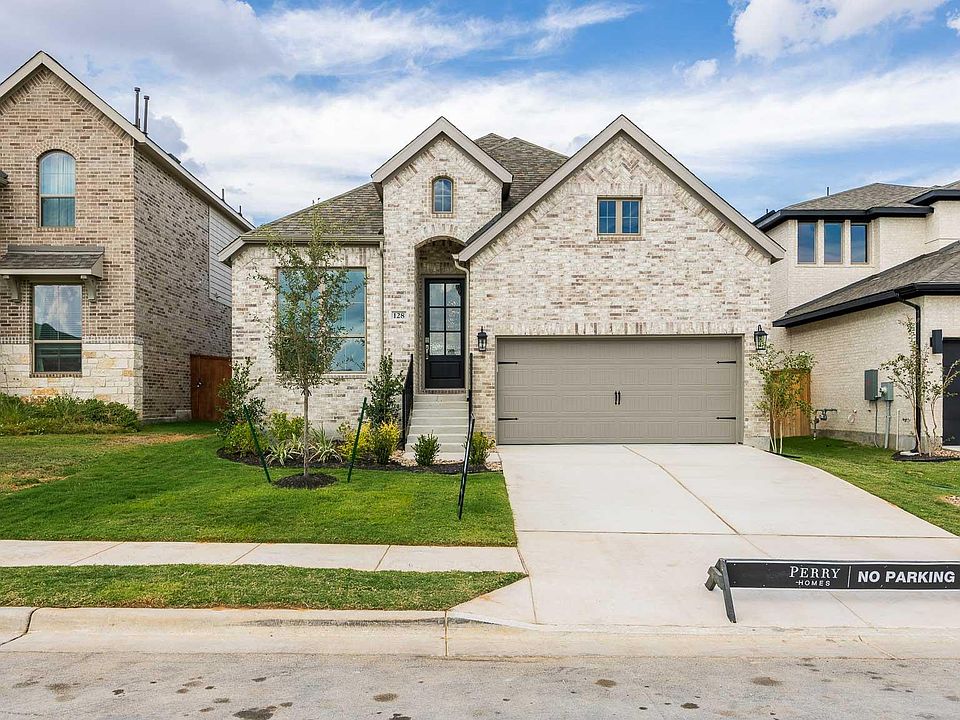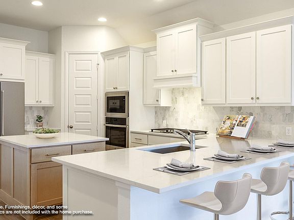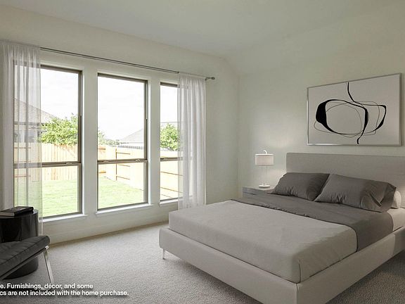 READY FOR MOVE-IN! Home office with French doors set at entry with 11-foot ceiling. Open kitchen offers center island, 5-burner gas cooktop and corner walk-in pantry. Dining area opens to spacious family room with wall of windows. Private primary suite includes bedroom with wall of windows. Dual vanity, corner garden tub, separate glass-enclosed shower and large walk-in closet in primary bath. Abundant closet space and natural light throughout. Covered backyard patio and 7-zone sprinkler system. Mud room off two-car garage.