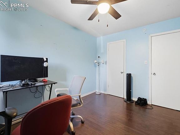 This inviting home beautifully blends warmth, functionality, and versatility — ready for you to make it your own. From the moment you step inside, you’ll be greeted by elegant tile and hardwood flooring that flow seamlessly throughout the open-concept living, dining, and kitchen areas. The layout is perfect for both everyday living and entertaining guests. Upstairs, you’ll find the spacious primary suite with an attached bath, plus two additional bedrooms and a second full bathroom featuring a tiled vanity and convenient laundry chute. The lower level offers even more flexibility with a cozy family room, an additional bedroom (ideal as a home office), a full bathroom, laundry area, and a separate entrance — perfect for guests or multigenerational living. Step through the French doors to a serene backyard oasis, complete with a covered deck, blooming shrubs, and mature trees offering both beauty and privacy. Located in a desirable neighborhood near Widefield Community Park and less than two miles from the new King Soopers Marketplace, this home offers exceptional convenience to shopping, dining, and recreation — all while maintaining a peaceful, residential setting.
