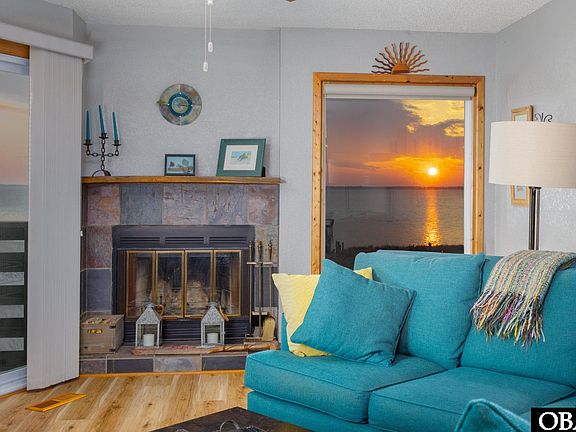 If you enjoy breathtaking waterfront views, stunning sunsets, and effortless coastal living, then this turn-key, soundfront condo in Nantucket Village is for you. Just one mile from downtown Duck, this 2-bedroom, 2-bathroom retreat offers nearly 1,200 square feet of single-level living, designed to maximize both comfort and scenery. With panoramic water views from almost every room and a west-facing picture window, you’ll have the perfect backdrop for serene evenings and star-gazing nights. The open-concept layout features a cozy wood-burning fireplace in the living room, a well-appointed kitchen, and a dining area with front-row sound views. Both bedrooms are en suites, offering privacy and convenience, with the primary suite boasting a cedar-lined walk-in closet and an in-unit washer and dryer tucked neatly inside. A private garage provides ample storage for beach gear, bikes, and more. Located in the sought-after Nantucket Village, residents enjoy access to a heated indoor pool, tennis court, a private soundfront pier with a gazebo, and a boat ramp for small watercraft—perfect for embracing the waterfront lifestyle. Plus, downtown Duck is just a mile away, offering some of the best restaurants on the Outer Banks, charming boutiques, and live music every summer night. Whether you're looking for a peaceful retreat or a year-round residence, this move-in ready soundfront gem delivers the ideal blend of comfort, convenience, and stunning natural beauty.