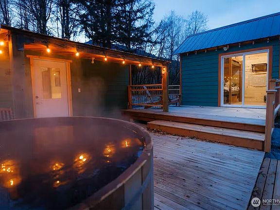 Come check out this cozy cabin about 30 minutes from White Pass. Currently used as an STR featured on sites such as Airbnb and VRBO, you can use the property as your full-time home or continue to utilize it as an income-producing residence and stay when you feel like escaping to your own quiet retreat. Although the home is close to the highway, there is plenty of foliage to block it from view, and you can't hear road noise from inside the home. Situated on 2.4 acres, the main cabin features a warm, rustic design with 1 bedroom and 3/4 bath. The bunk house offers a queen-size bunk bed, and situated between the two is a spacious deck perfect for entertaining, and a cedar soaking tub.