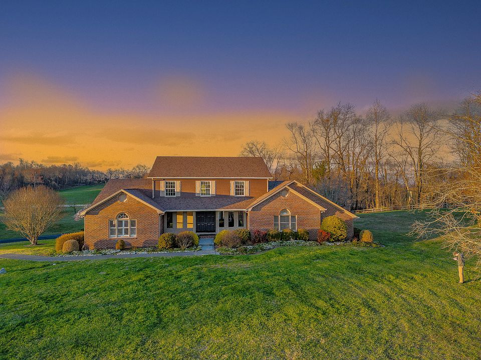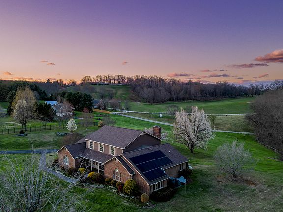 Luxury meets sustainability, located in upper East Tennessee where the sunsets bounce off the Smoky Mountains. Welcome home to your five bedroom, three full bath estate nestled at the top of 5.6 acres. Five features that you are sure to fall in love with are the EV charging station, twenty solar panels, open concept basement, oversized laundry with enhanced storage capabilities, and lastly, main level primary suite living including your spacious ensuite. As you enter the home you will experience an abundance of entertainment space within the large den and outdoor deck access for your summer barbecues, and late night star gazing. Large kitchen offers original hardwood cabinetry with a morning room, and views of local deer grazing. Entertain your guests off of the kitchen in the dining and formal living room with spacious seating, and custom window treatments opening the front of the home to the rolling hills. Located on primary level is also your spacious oversized laundry room. Upstairs living offers three oversized bedrooms that could accommodate king sized bedroom sets. Additionally, two full bathrooms accommodate all bedrooms, one offering Jack and Jill style between two of the bedrooms. Navigating to your open concept basement, you will first take note of the beautifully appointed tile flooring throughout. Currently, the space offers limitless opportunity to make this space your own and create a living area around a wood burning stove for your future family and guest events including holiday get togethers. Your oversized two to three car garage offers ample space for gardening and yard equipment along with your vehicles. This property offers no HOA fees, no restrictions, and a bonus opportunity to add livestock to include chicken, goats and more. Schedule a showing today with a REALTOR®. Buyer and/or Buyers Agent to verify all information.
