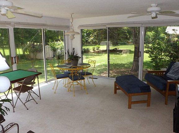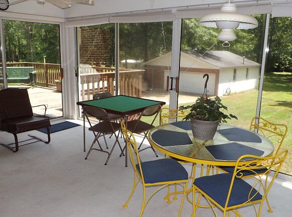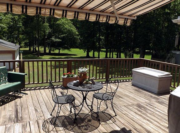 Over 1 ACRE of land. All brick home with den, great room, large dining room, 4 bedrooms, separate laundry room, butler's pantry, a wonderful large all seasons room , large deck with auto/awning overlooking a private back yard. The brick detached 2 car garage has a massive workshop area. New ROOF in 2015, New Gas Pack in 2012 and Tankless Water Heater in 2014. This is a MUST SEE! Yearly HOA fees are included in taxes. LOCKBOX ON SIDE DOOR.