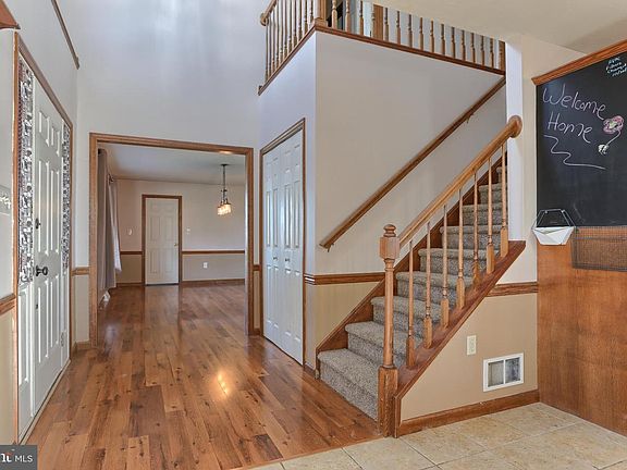 Beautiful spacious home with many upgrades! 5 large bedrooms, all with access to a full bath and large closet. Enjoy sunsets with a view of farm fields and the mountains in the distance from the full/deep front porch that has recently been repainted, or morning coffee and your 1 acre lot backing up to fields from the rear covered deck with access to the master BR & FR. Rear deck has also recently been repainted. Hardwood, tile, laminate & porcelain flooring along with upgraded carpet throughout. 1st floor Master BR with FP, hardwood floors and beautiful master bath. Dbl sinks with solid surface countertops, desk/make-up area, deep jetted soaking tub, his and her walk-in closets, 4' standalone shower and a skylight. Spacious kitchen with tile floors, large 2 level island with 4 chairs, 2 extra large pantries, lots of counter and cabinet space, decorative tile back splash and all stainless steel appliances remain. Formal DR with hardwood floors and bay window, 1st floor family room off kitchen with a FP and access to the rear yard and deck. 2 story entry foyer with large landing area and plant shelf on 2nd floor. 4 spacious bedrooms, all with access to full jack & jill baths. 2 rooms have large walk-in closets, 2 have dbl bi-fold closets, 3 bedrooms have ceiling fans and 2 have built in cabinet/desk areas. 1 bedroom closet leads to bonus storage space above the garage. Partially finished recroom in lower level with propane heater and separated storage/utility room. Laundry/Mud room off garage includes washer & Dryer, a utility sink and dbl bi-fold closets. Oversized 3 car garage (39' X 23') will fit a large truck, and the work benches will remain. Shed & above ground pool with solar cover, all equipment and supplies will remain. Whole house water filter, 73 gal propane hotwater heater,2 zone oil heat & AC. (Oil & propane tanks were just filled). 1 year HSA Home Warranty also included.