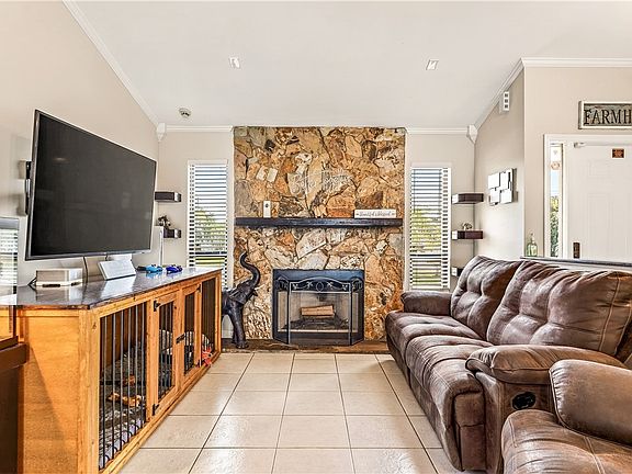 Screened poolStone fireplaceOpen floorplanVaulted ceilingsCovered patioOversized fenced backyard