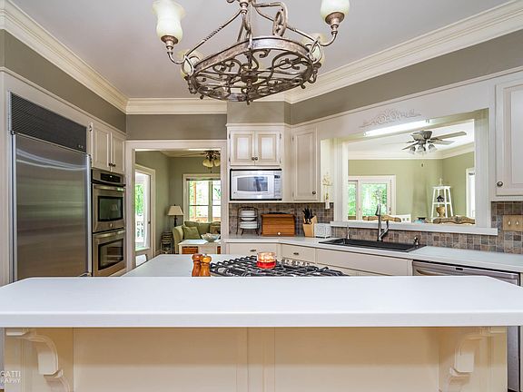 One of a kind 6 bedroom, 4.5 bath on quiet cul-de-sac in beautiful Rivoli Downs w/lake access. Modern high-end kitchen finishes to include stainless subZero Fridge, Double Oven, Large Sink w/Touch Faucet, Electrolux Gas Stove in island. Master Suite on main with 680+- sq ft features sitting room, custom his & hers closets, Garden tub & separate shower. Spacious living room, high vaulted ceilings, built-ins, gas fireplace, 430+-sqft walk-out deck. Total SF incl Appx. 1600+- sq ft of daylight basement, with 2 bedrooms, 1 full bath, Full Kitchen, Laundry room, Den & Game Room, Gym, Workshop. Walk out patio. 80 gallon High Efficiency Electric Heat Pump, ample parking, Brand New Main & Upstairs AC , Plantation Shutters, & Custom Window Treaments. APPRAISED @ 390,00