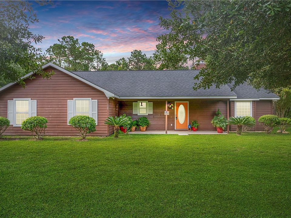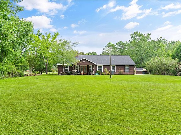 Serenity & peace is just what you will find at this beautiful home that has NO HOA and NO flood insurance required! This split floor plan has been well maintained and is nestled on a one-acre well-manicured lot. As you enter in through the foyer you will be greeted with the lovely living room that has a beautiful fireplace. This open floor plan has the dining area directly behind the living room area. The kitchen has stainless steel appliances that includes a gas stove and plenty of space for several barstools to be added for an eat in kitchen area! You will see the master situated on the right side of the home (currently used as a man cave) with a spacious master bath that includes a walk-in shower and oversized garden tub. The garage has been converted to a second large living space that could easily be converted to a large 4th bedroom. This home has 3 carport areas, and one has a shop attached that has been insulated with foam spray and also has power and water to it. Don't wait too long to see this one!!!