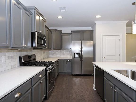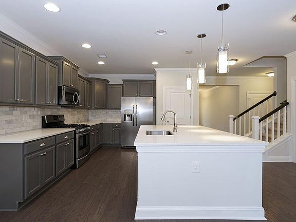 - Features: Breakfast Bar, Kitchen Island, Pantry, Stainless Steel Appliances, Solid Surface Counters