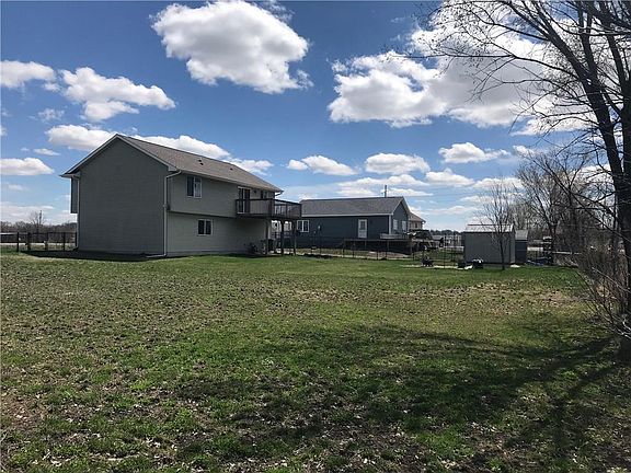 Come check out this beautiful split foyer home with a large fenced yard on a spacious double lot! Great location in Patterson just a short drive to Winterset and less than 5 miles from the interstate making a quick commute to West Des Moines! Relax and unwind in your living room with vaulted ceilings making a spacious view of the kitchen. 150sq ft deck right off the kitchen is perfect for grilling! Attached garage leads into your ground level that's ready for future finish adding a man cave/4th bedroom. Basement is stubbed for 3rd bath as well. You'll have the biggest yard on the block and so much space to enjoy with almost a half acre of completely fenced back yard. Amish built metal shed in the back yard is less than a year old and perfect for all of your gardening supplies! Raised garden/flower beds to grow your own produce and smell the roses. Enjoy gorgeous uninterrupted views of the sunrise right out your front door and make this house your home!