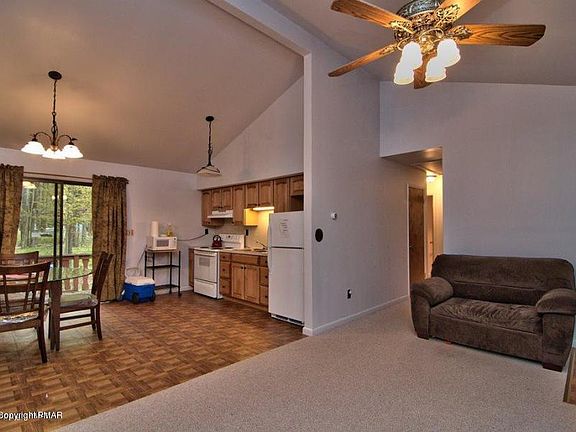 Updated ranch, has a large living room with vaulted ceilings, stone fireplace, dining room/kitchen with new oak cabinets, full bath with new vanity, carpet, rear deck, circular driveway. A beautiful over sized wooded lot, must see to appreciate. Close to indoor/outdoor water parks, shopping and Mt. Airy Casino.