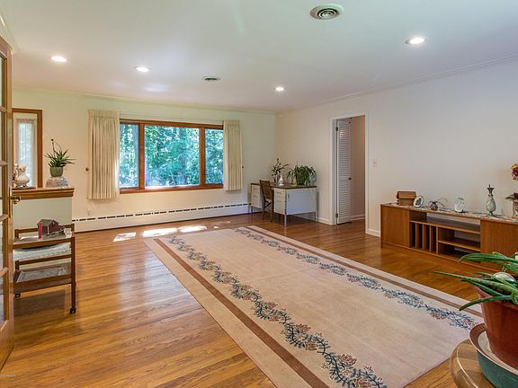 Nestled on a private acre lot, this sprawling, expanded 4 bedroom 2.5 bath ranch offers a very flexible floor plan which can meet the needs of many. With plenty of areas for working from home or remote learning, it is just perfect for today's lifestyle. The kitchen features a center island, maple cabinets and is open to the sunken family room which has a gorgeous stone fireplace, tray ceiling and leads to the expansive yard. A huge master suite boasts an oversized walk-in closet and bath. There are hardwood floors, crown molding, 3 zone hot water baseboard heat and more. The basement has a finished area, work room and ample storage. Convenient to the GSParkway, shopping, schools, and public transportation, this is a must see!!!