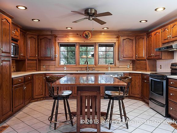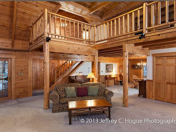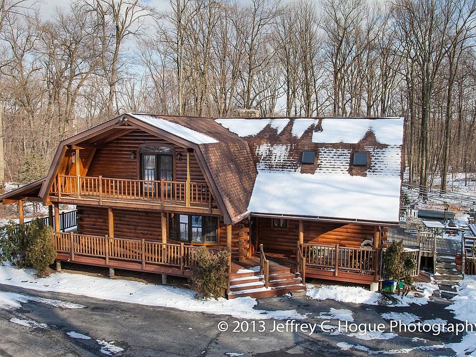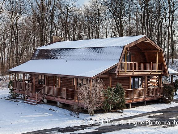 Stunning custom log home nestled in the picturesque rolling hills of the Oley Valley, Berks County. Enjoy the properties natural beauty while sitting on the covered porch, barbecuing on the large deck with awning, taking a stroll by the spring-fed pond, or roasting marshmallows by the fire pit and picnic pavilion. This is a true log home constructed of 8''8 yellow pine timber not veneered cedar. The first floor will delight all who enter ''' custom Quaker Maid Kitchen, large dining area and spectacular family room with stone fireplace flanked by windows and vaulted ceiling showcase the dynamic architecture of this home. The first floor also features two bedrooms an optional first floor laundry, full bath and several outdoor access points. The second floor'''s open loft overlooking the family room provides not only a large functional space but offers another perspective to the intricate timber construction.