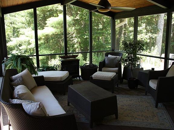 • Exterior Features: Porch, Gutters, Stone Wall, Porch - Screened, Tennis Court