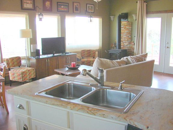 THE OWNER OFFERS $ 5,000 CREDIT FOR FLOORING AT CLOSE. A lovely custom 2,056 sq ft home that feels like your the only one in the world. You have friendly neighbors, but, they are not visible. The 768 sq ft basement in-law apt opens to the rear of the property w/views of the valley below. There is a 16x12 work shop/shed and and at its rear a 8x9 addition housing an 8,000 watt propane generator. There are 2 solar panels reducing energy consumption, and a dish for TV reception. The treated well water, pumps out at 30 gal/min. Bathrooms and kitchen have tile and granite with colored glass back splash in the kitchen. The well built, energy efficient home has "Trex" decking around 3 sides of the home providing ample shaded lounging areas.