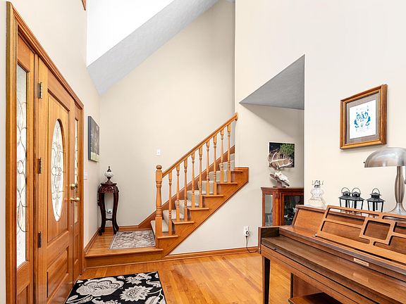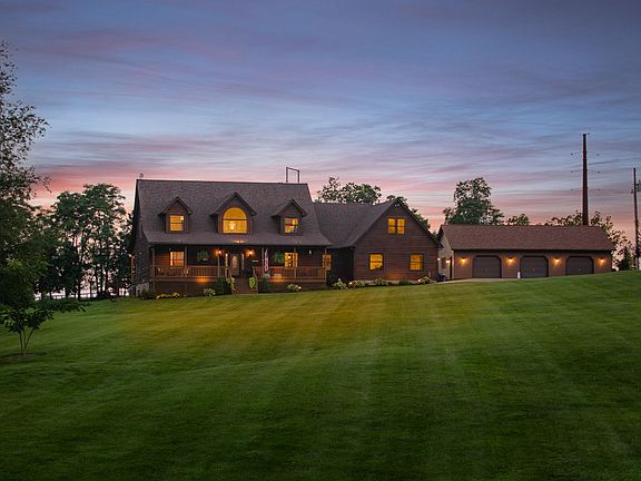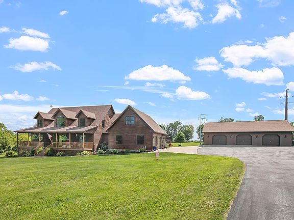 Escape to your new happy place! Relax on your front porch, listen to crickets, and lose yourself in the tranquil serenity of this stunning 6.5 acres at the end of the lane. This showcase kitchen includes a butler's pantry and new induction stove and opens to a large family room, fireplace and wood-vaulted ceilings. The first-floor primary bedroom offers a gorgeous view of the property. Two additional bedrooms and a bathroom upstairs are adjacent to a bonus area with a separate entrance. Step out back to your private oasis and relax in your saltwater pool or under the large, covered porch. Garage space for 5 cars? Yes, please! The 3-car detached garage is heated with plenty of attic storage and a bathroom. From the whole house Generac generator to the many pocket doors, this house is a gem you do not want to miss! For a list of all the cool features of this home, see the attached ''About our Home'' list in the documents section. Come be amazed at the panoramic views from all vantage points including gently rolling hills, sparkling pond and greenspace as far as the eye can see! Bar in garage does not convey.