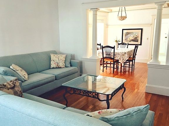 LOCATION,LOCATION, LOCATION ! Beautifully furnished, 2 bed and 2 both condo with hardwood floors throughout. Box-beamed ceilings + built-in glass cabinet in dining rooms w/ columns making for a smooth transition from living room to dining room. All appliances included. Washer and Dryer in the basement. Condo is well furnished. Close to city Boston, and Walk to commuter rail, shops, + "T". MUST SEE!