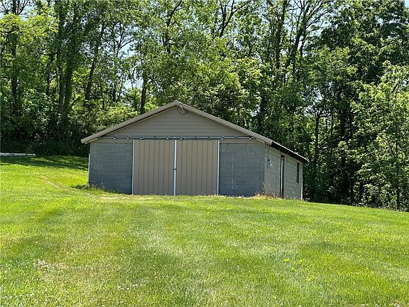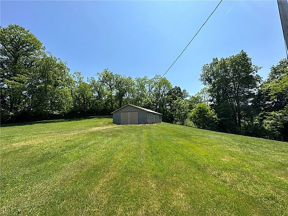 HAPPILY EVER AFTER-This delightful 4 bedroom, 2 bath stone ranch home is located on a dead-end cul-de-sac with NO extra traffic here! Large concrete block workshop/storage building w/metal roof & a detached garage too. New hickory kitchen cabinetry in eat-in-kitchen w/built-in wooden cabinet/breakfast nook, Spacious living room w/hardwood oak floors & beautiful fireplace & large picture window, open formal dining room w/hardwood floors, 2 spacious bedrooms w/hardwood floors & lots of closet space, 2 totally renovated full baths, downstairs there is large family room w/another pretty stone fireplace/wood burner-excellent second heat source if needed, another 2 spacious bedrooms downstairs or seller used one of the rooms downstairs as an office. Features newer metal roof on house & garage, all new gas line, bathrooms totally remodeled, all windows replaced w/newer double-paned windows. Public water & Public sewage (also an operating well on property for watering lawn or washing cars)