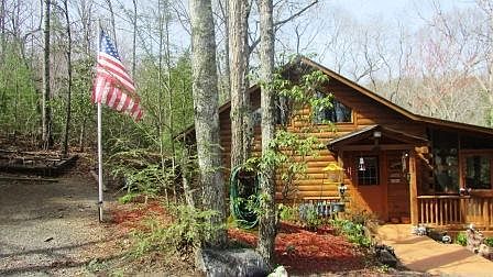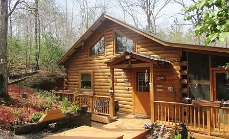 CHARMING REAL LOG HOME! Offers end of road privacy. Excellent condition and most of the beautiful custom furnishings will remain. Metal roof, stunning open ceiling w/ beams, plenty of glass for sunlight. Hardwood floor, rock fireplace, ample bedroom size and gourmet Kitchen w/nice cabinets and built in loft/attic storage. Large 10x36 screened porch as well as landscaped back area w/ fire pit for sitting enjoyment & relaxation, very private. Low maintenance, level yard,lots of parking spaces. Security system,storage shed & garden space. Also, recently installed back up wood furnace. Provides excellent heat and very economical.