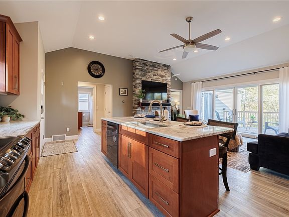 FAIRPORT ELECTRIC! First floor living at it's finest! Completely remodeled ranch with finished walk-out basement! Perfect for entertaining! HUGE fully fenced backyard with covered stone patio! Open concept Great room boasts stacked stone gas fireplace, vaulted ceiling & oversized glass slider to back deck. Kitchen remodeled 2019. Granite countertops, seated island with sink & subway tile backsplash. Upgraded stainless steel appliances. First floor laundry/ mud room with built-in storage & hall tree. Vast primary suite with coordinating stacked stone gas fireplace, walk-in closet & luxurious bathroom featuring a rainfall shower. Primary bedroom has door leading to back deck. All new HVAC 2019. Roof installed 2019. Updated windows 2019. New siding 2020. Basement was finished 2021 & features a large bedroom, a full updated bathroom, living room, office & partially finished storage room. Mason stone work done 2021. Garage floor has broadcast epoxy! Possible 4th bedroom could be added in basement. Open house Saturday Nov 2nd from 11:00-12:30pm. Delayed Negotiations until Tuesday 11/5 at 12pm. Please note: square footage includes 1,386 (main floor) & 970 in finished basement