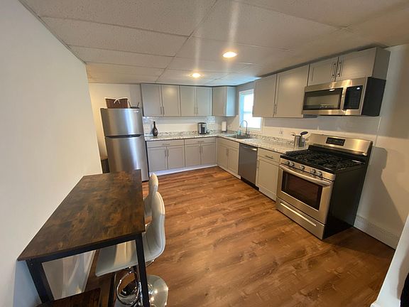 Beautiful NEWLY RENOVATED spacious 1st floor one bedroom apartment. Enjoy one floor living with a bright open living room and large eat-in kitchen with storage pantry. Hardwood laminate flooring throughout. Brand new kitchen featuring stainless steel appliances, new cabinets and touchless sink faucet! Renovated bathroom w/stall shower. Washer/dryer in the unit. Large bedroom big enough to fit a king size bed with ample closet space. Walk to Main Street for great shopping and dining. Close to major highways and bus stops for an easy commute! This is a must see! Street parking only. No smoking, pets considered, 1.5 month security deposit, 1 month broker fee and must have 700+ credit score. Available furnished for $2,300/month Tenant pays: Gas, Electric, Internet/Cable, Snow Removal Owner Pays: Water/Sewer No Smoking Pets considered for an extra $50/month per pet Street Parking