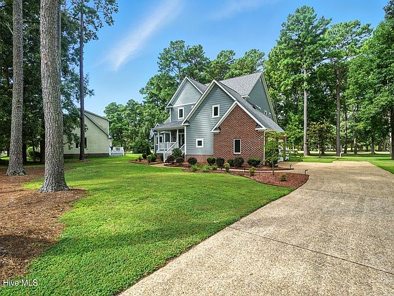 LOCATION, LOCATION, LOCATION....Welcome to your dream home in the gated community of Albemarle Plantation! This beautifully maintained property combines convenience, style, and functionality; offering the perfect blend of modern living and timeless charm. Whether you're a first-time buyer or a growing family, this home will impress you from the moment you step inside! Backing up to the #1 hole on the Dan Maples Sound Links course in a pristine neighborhood of custom-built homes, this can be your perfect home with so many features, beautiful landscaping, and a fantastic location. Start with the convenience of a first-floor primary bedroom and a large bathroom with jacuzzi tub, plus a downstairs flex room that can be the perfect office. The spacious open floor plan combines a great room with electric shaded windows, a kitchen with granite counters, tile backsplash, and a window-lined dining area. With doorways to a screened porch and a Trex deck with PVC railings and a hot tub that conveys, it's the perfect spot for watching golfers on the #1 fairway. Next, climb the floating stairs to three more bedrooms and two bathrooms and walk-in attic space! Newly painted with ceiling fans throughout and all window treatments convey! AND EFFICIENCY... 2 zone HVAC, new insulation, dehumidifier in the enclosed crawl space, TWO hot water heaters, underground propane tank and a two-car garage with epoxy flooring and built in shelves!
