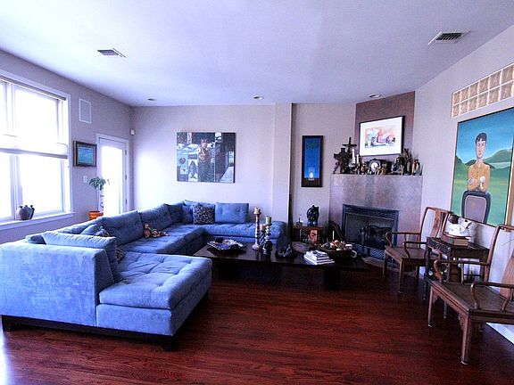 Welcome home to this amazing townhouse with garage parking & 3 huge terraces. The inviting entry foyer leads up to an oasis of a living space. Enjoy an oversized living room, spacious dining area & open kitchen layout. Home can be utilized as current 2-bedroom layout or converted to a 3rd bedroom on upper level. Current use features a huge entertainment room on upper level, complete with wet bar. Kitchen features beautiful wood cabinets, granite counters, breakfast bar & more. Enjoy a luxurious master bath with marble finishes & a rainfall/multi-jet shower. Large bedrooms, fireplace, central air/heat, laundry room, two storage rooms downstairs (can be used as offices) and two-car parking complete this package. This is your dream home. 3 blocks to Light Rail.