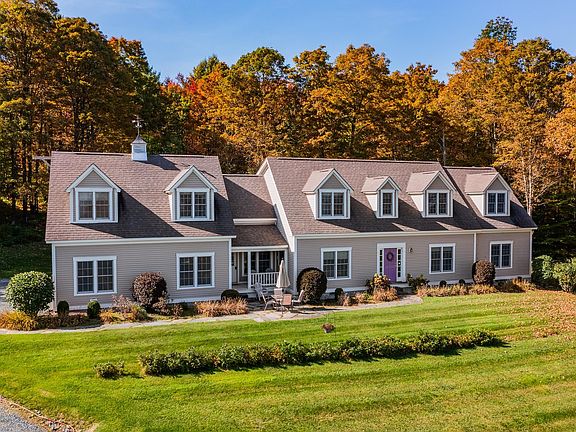 This spacious Cape built in 2005 on 60+/- managed acres at the end of a private driveway, is minutes from Norwich Village and Hanover, NH. At an elevation of 1300 feet, the site offers complete privacy and long-range views of Holt’s Ledge (home of the Dartmouth Skiway) with Moosilauke, Killington and Pico mountains all seen from other vantage points. The four-bedroom, four-bath home offers 3700+/- sq ft of living space including a separate apartment, as well as an attached heated garage and a walkout basement with vehicle access. The main house offers three bedrooms, three baths, a kitchen, living-dining room, study/TV room, exercise room, office, and mudroom. The apartment suite for caretaker, in-laws or guests consists of a kitchenette, living-dining room, bedroom, and bath and is located above the garage with access via the second floor of the main house or by exterior stairway. Miles of connected trails, bounded by stone walls and crossed by seasonal brooks, offer access to the parcel’s vast interior. The landscape includes raised beds suited to growing vegetables and cutting flowers, abundant apples trees, and the surrounding meadows, ablaze with wildflowers in the summer months, host a variety of wildlife. A private mountain top retreat, Mount Tabor offers a beautiful residence, abundant acreage, established and easy land access and long-range views only 12 minutes from the village of Norwich and 18 minutes from Dartmouth College.